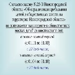 Согласно закону №23-3 Нижегородской области "Об ограничении пребывания детей в общественных местах на территории Нижегородской области" не допускается нахождение в общественных местах детей до шестнадцати лет: в осенне-зимний период с 01.11 по 31.03 с 22 до 6 часов;